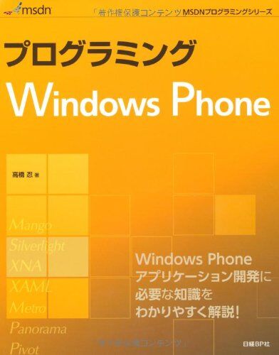 プログラミングWindows Phone (MSDNプログラミングシリーズ)作者: 高橋忍出版社/メーカー: 日経BP社発売日: 2011/10/06メディア: 単行本購入: 2人 クリック: 264回この商品を含むブログ (28件) を見る 昨日届いた。 日系BP社の技術書って「取りあえず出版し…